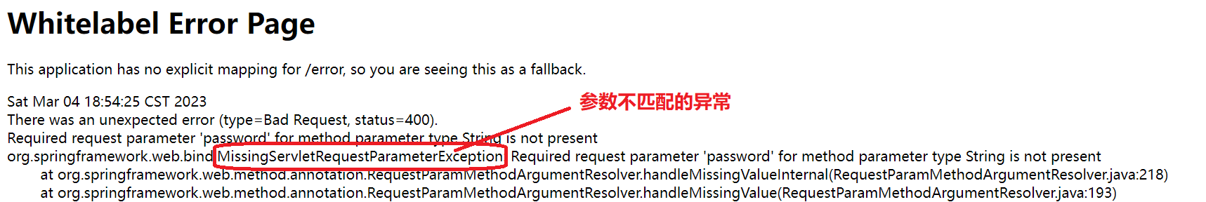 如果调用这个接口,参数不完整,则抛出以下异常。但是这样的界面显然不友好。