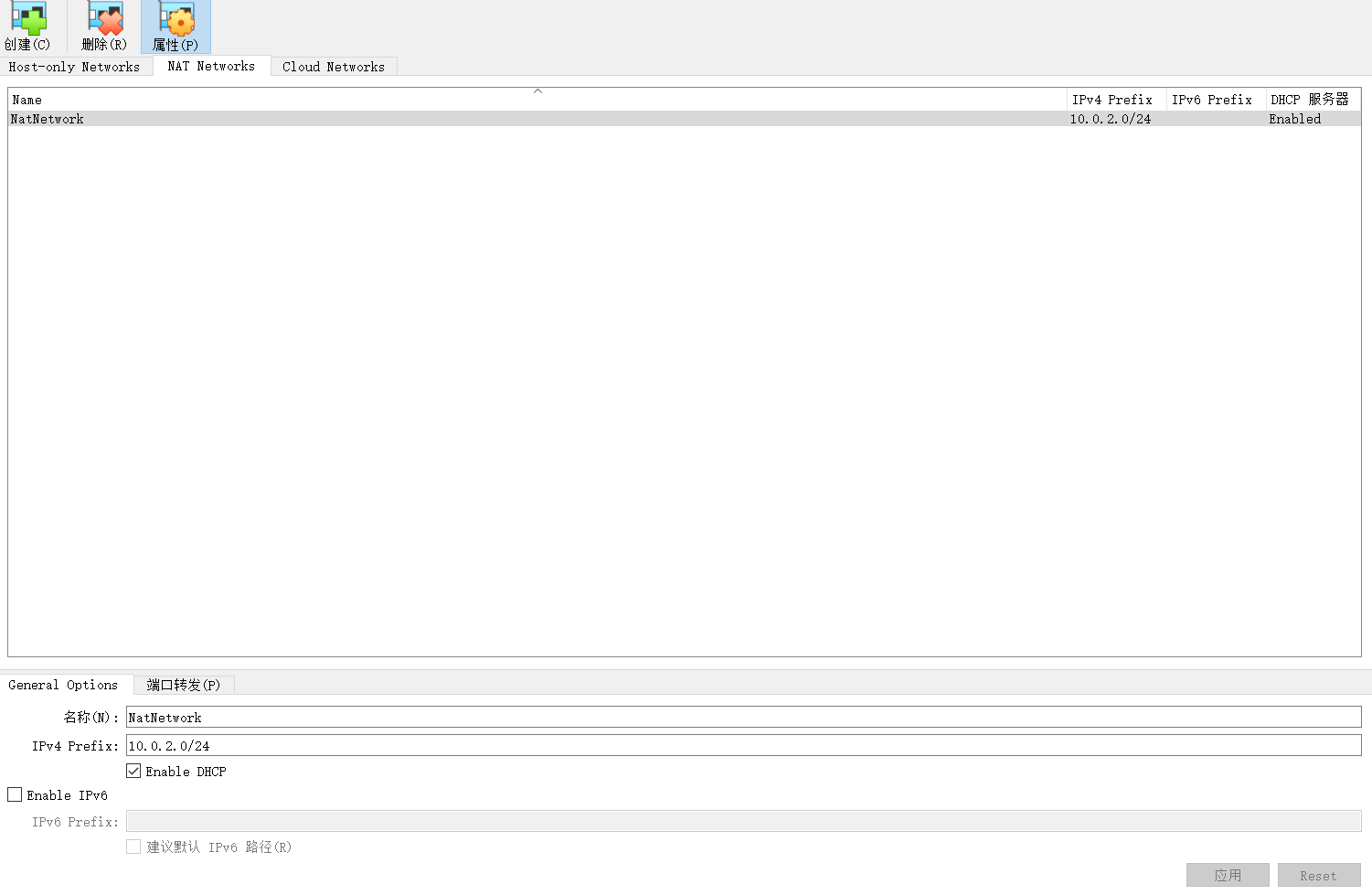 首先,在virtualbox中选择工具->NAT Networks,创建一个Nat网络。
