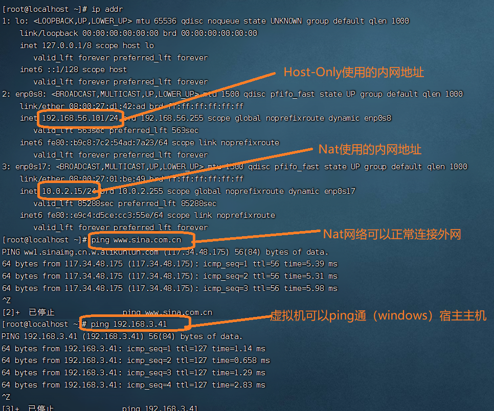 实现原理:pc3是我们的电脑,我们在电脑的VMware创建了虚拟机,首先pc3会在网卡上创建出一个虚拟出一个类似于路由器的NAT服务器,此时通过这条线路可以连接到外网(Internet)。同时我们还要再创建一个虚拟网卡,这样我们vm虚拟机就能和pc3主机进行相互访问了。