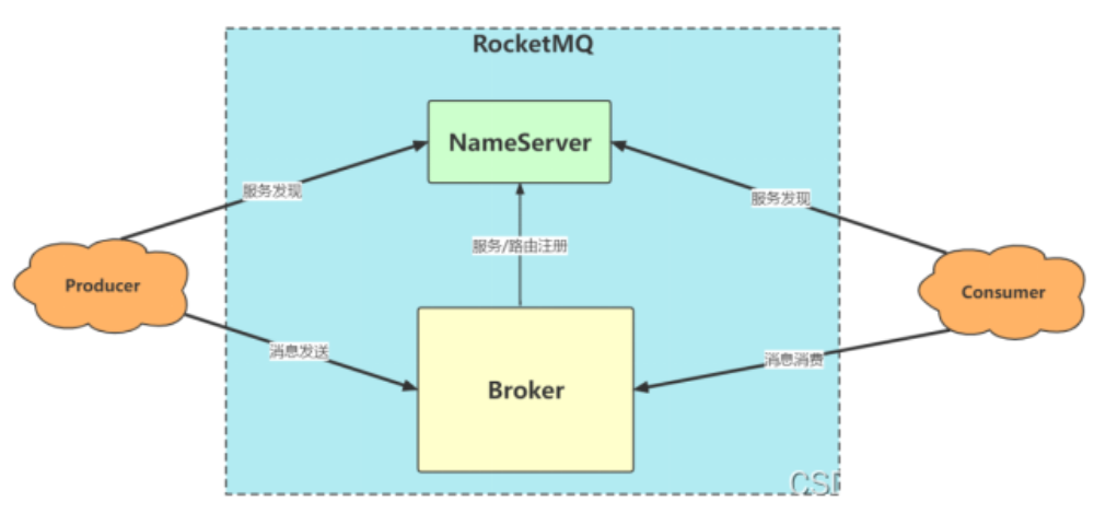 - 消费者(Consumer):也称为消息订阅者,负责从RocketMQ接收并消费消息。