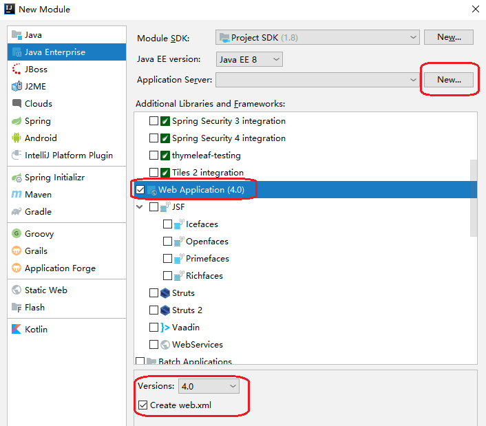 5).选择Java Enterprise ->Web Application,具体勾选项如下图所示