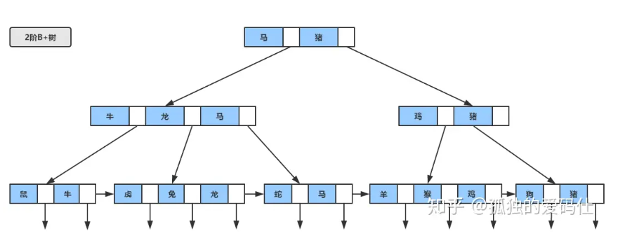 下面就是用B+树实现的十二生肖的索引存储结构。