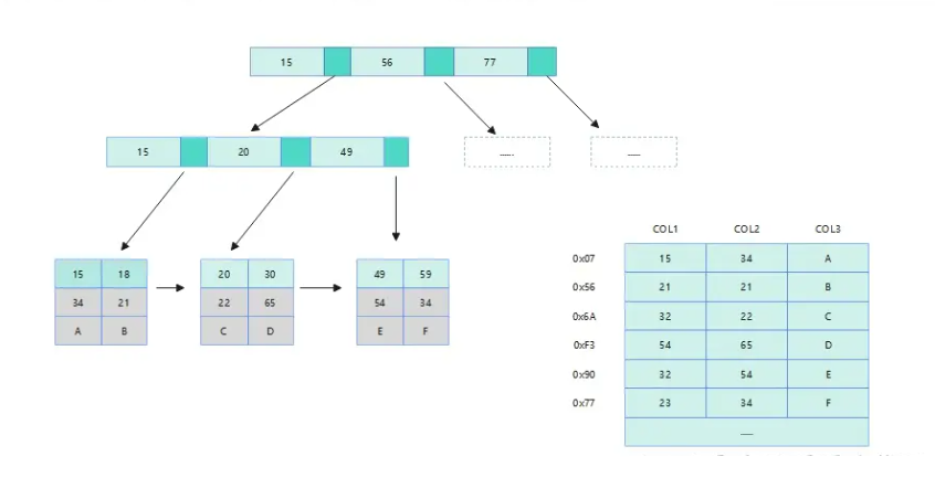 - 每个叶节点都带有指向下一个元素的指针,从而形成了一个有序链表。
