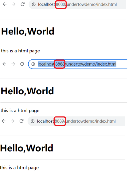 2023-10-11 22:30:19.698 INFO 8256 --- [ restartedMain] o.s.b.w.e.undertow.UndertowWebServer : Undertow started on port(s) 8080 (http) 8888 (http) 8889 (http) 8890 (http) 8891 (http) 8892 (http) with context path '/undertowdemo'