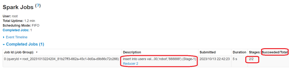 0: jdbc:hive2://master:10000> insert into users values (600,'robot','888888');
