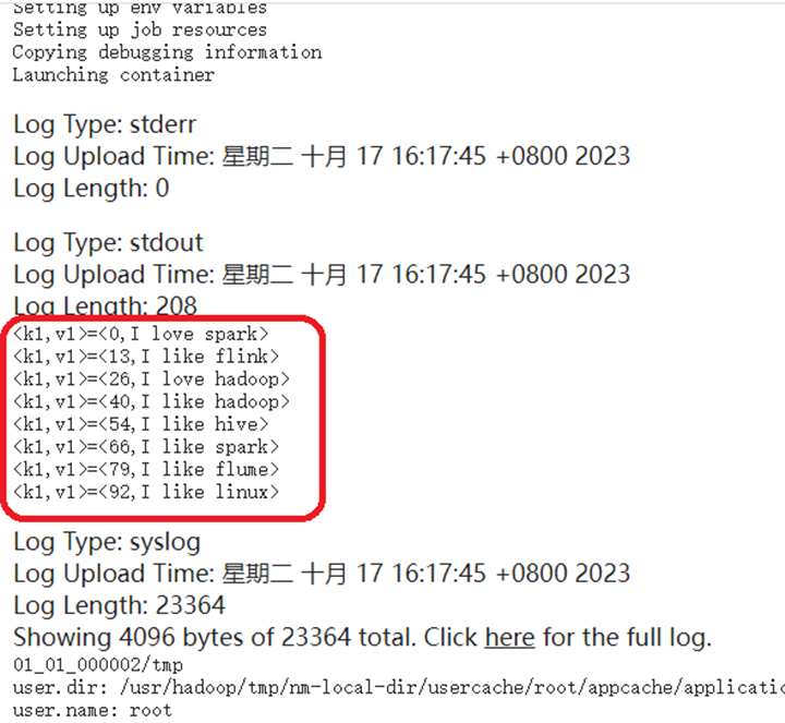 在上小节案例中,我们无法查看MapReduce任务日志。我们可以在自定义mapper类的map函数中增加一个输出,将k1,v1的值打印出来。