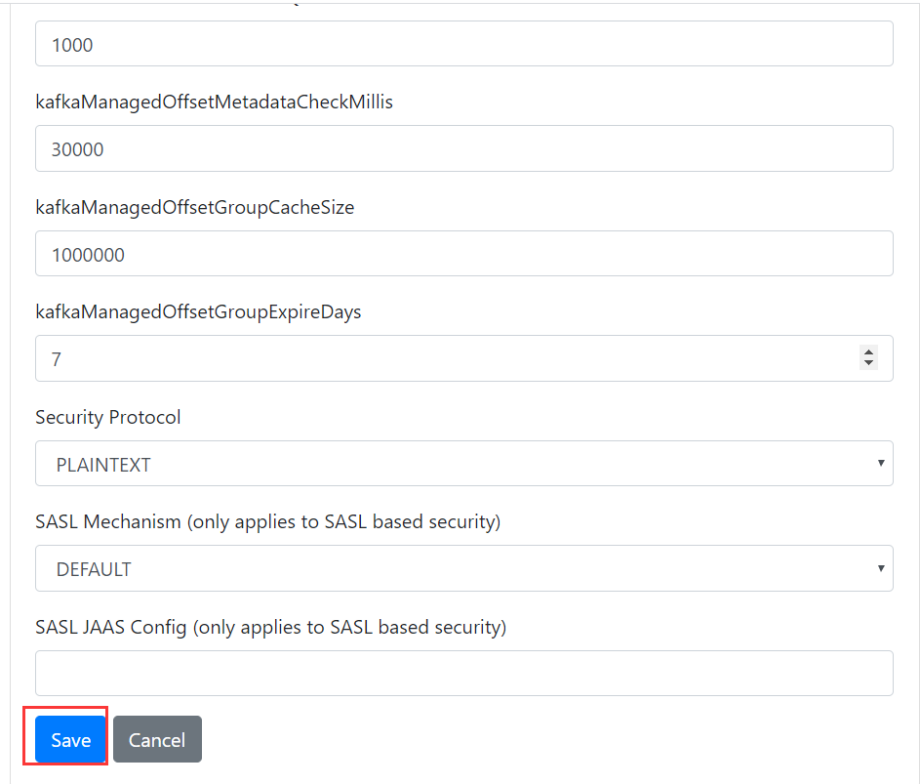 这几个参数配置好了以后还需要配置以下几个线程池相关的参数,这几个参数默认值是1,在保存的时候会提示需要大于1,所以可以都改为10