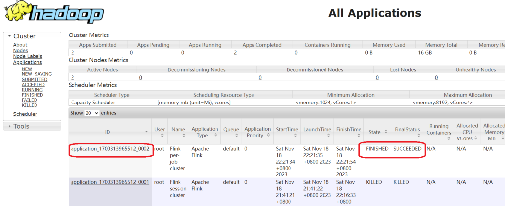 [root@master flink]# yarn application -kill application_1700313965512_0001
