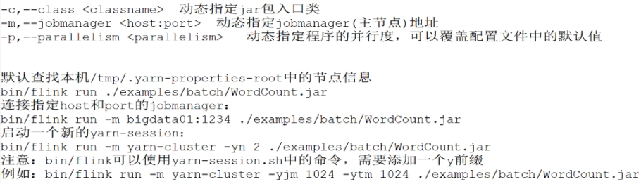 flink run -m yarn-cluster (创建Flink集群+提交任务),使用flink run直接创建一个临时的Flink集群,并且提交任务。此时这里面的参数前面加上了一个y参数。