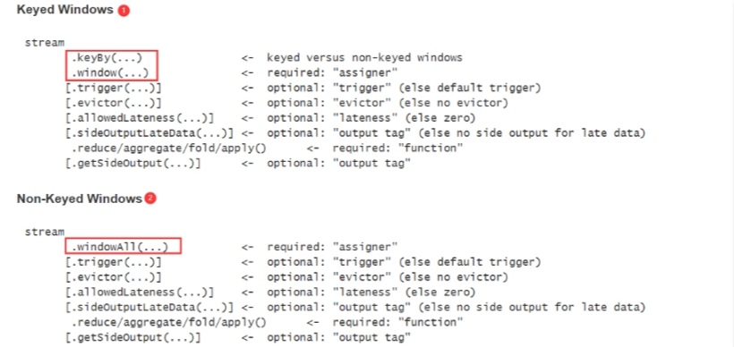 针对基于key的window需要使用window函数。 针对不基于key的window需要使用windowAll函数。