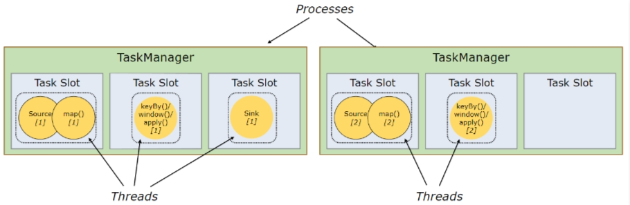 一个Flink程序由多个组件组成(Source、Transformation和 Sink)。 一个组件由多个并行实例(线程)来执行, 一个组件的并行实例(线程)数目就被称为该组件的并行度。