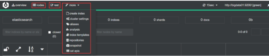 更多功能。包括创建索引、集群参数、别名、分词功能、索引模板等。