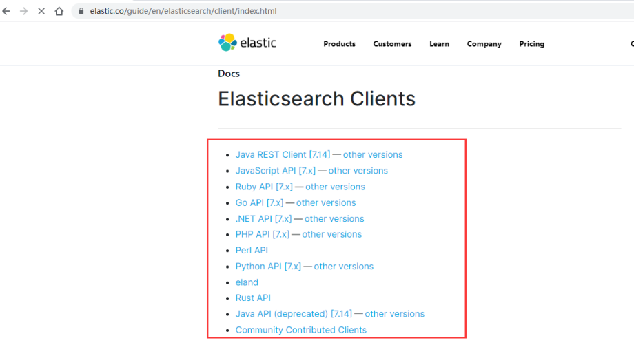 从Elasticsearch官网查询得知Es提供了很多种操作方式。