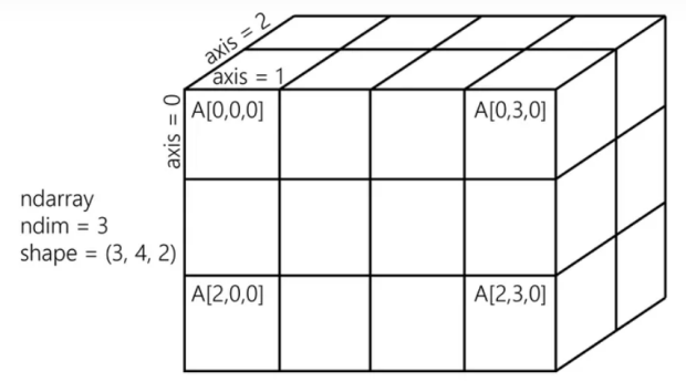 对于一维数组,只有一个轴,为axis 0轴,也就是0轴。