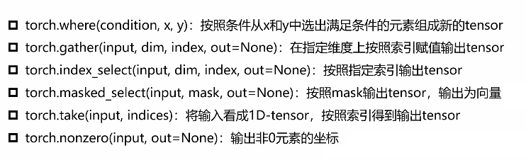 b = torch.take(a, index=torch.tensor([0, 15, 13, 10]))