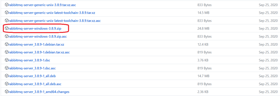 在RabbitMQ的github官网下载RabbitMQ 3.8.9。 https://github.com/rabbitmq/rabbitmq-server/releases,具体版本地址如下: https://github.com/rabbitmq/rabbitmq-server/releases/tag/v3.8.9