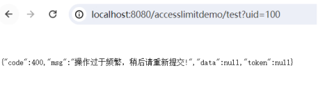 测试在一秒钟之内多重重复请求TestController接口,会出现相应的限流警告信息。