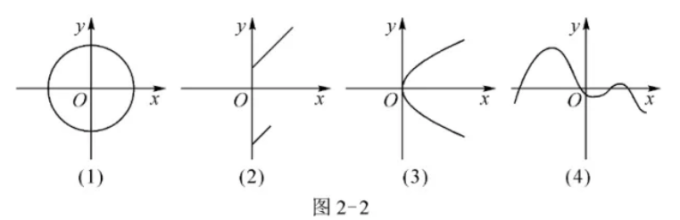 例如图2-2四个图形中,只有第四个是函数,其它三个都不是。