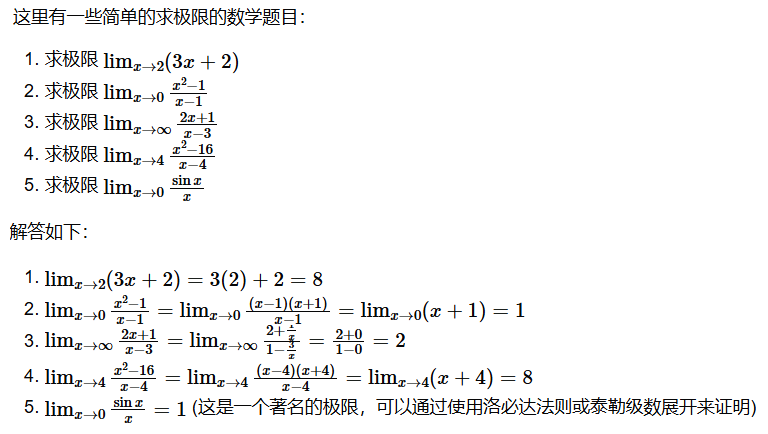 通过这种方式,极限帮助我们理解函数在接近某些特定点,甚至是在这些点未定义时的行为。这是理解函数整体行为的一个强大工具,特别是在处理微积分问题时。