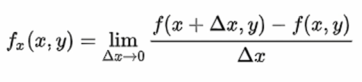 同样地,如果你想知道向北走一步的效果(即向北方向的高度变化),你会计算函数f关于y 的偏导数,记为: