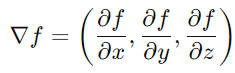 梯度是一个向量,它包含了多变量函数在给定点上所有偏导数的信息。对于函数f(x,y,z),其梯度表示为