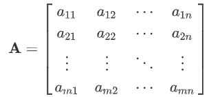 矩阵(Matrix),可以简单理解为一组向量,在代码中可以视为一个二维数组,其中的每个元素可以是标量。 在数学中,矩阵通常表示为一个矩形的数组,例如: