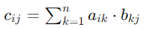 设 A 是一个 m × n 的矩阵,B 是一个 n × p 的矩阵,则它们的乘积 C 是一个 m × p 的矩阵。矩阵 C 的每个元素 C(i,j) 是通过将 A 的第 i 行与 B 的第 j 列对应元素相乘后再求和得到的。具体地,可以通过以下公式计算矩阵 C 的元素: