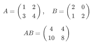 需要注意的是,矩阵乘法不满足交换律,即一般情况下,AB ≠ BA。即便是A和B矩阵的维度相同也通常不满足交换律。