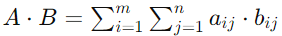 设有两个相同大小的矩阵 A 和 B,它们都是 m × n 的矩阵,内积(点积)的计算方式如下: