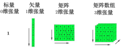 张量(tensor)是多维数组,目的是把向量、矩阵推向更高的维度。