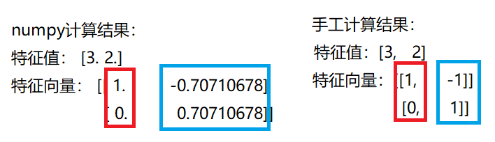 我们发现numpy计算的特征向量与手工计算的有偏差。
