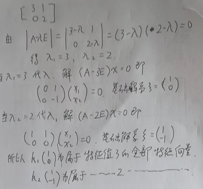 注意:只有方阵才能求特征值和特征向量。换句话说只能对n阶矩阵求特征值和特征向量。
