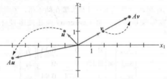 乘以矩阵A对某些向量仅仅有拉伸作用,如下图的向量v