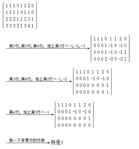 将矩阵做初等行变换后,非零行的个数叫行秩。 将其进行初等列变换后,非零列的个数叫列秩。