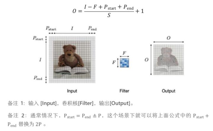 用I来表示输入大小,F表示卷积核的长度,P表示零填充的大小,S表示步长,那么沿着维度的输出特征图的大小O公式为: