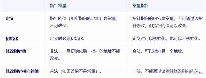 常量指针本质是指针(指向常量的指针),指的是指针指向的内容是常量,即不能通过该指针来修改它所指向的值。但是,常量指针本身的值(即它所指向的内存地址)是可以被修改的,即它可以指向另一个地址。