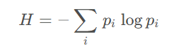 在信息论中,熵是用来量化信息的不确定性或随机性的度量。信息论中的熵(香农熵)用符号H表示,它与事件发生的概率分布有关。具体公式为: