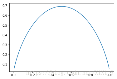 下面的python代码画出pi,取值为0.01到0.99的过程中,熵H(X)的取值曲线图。