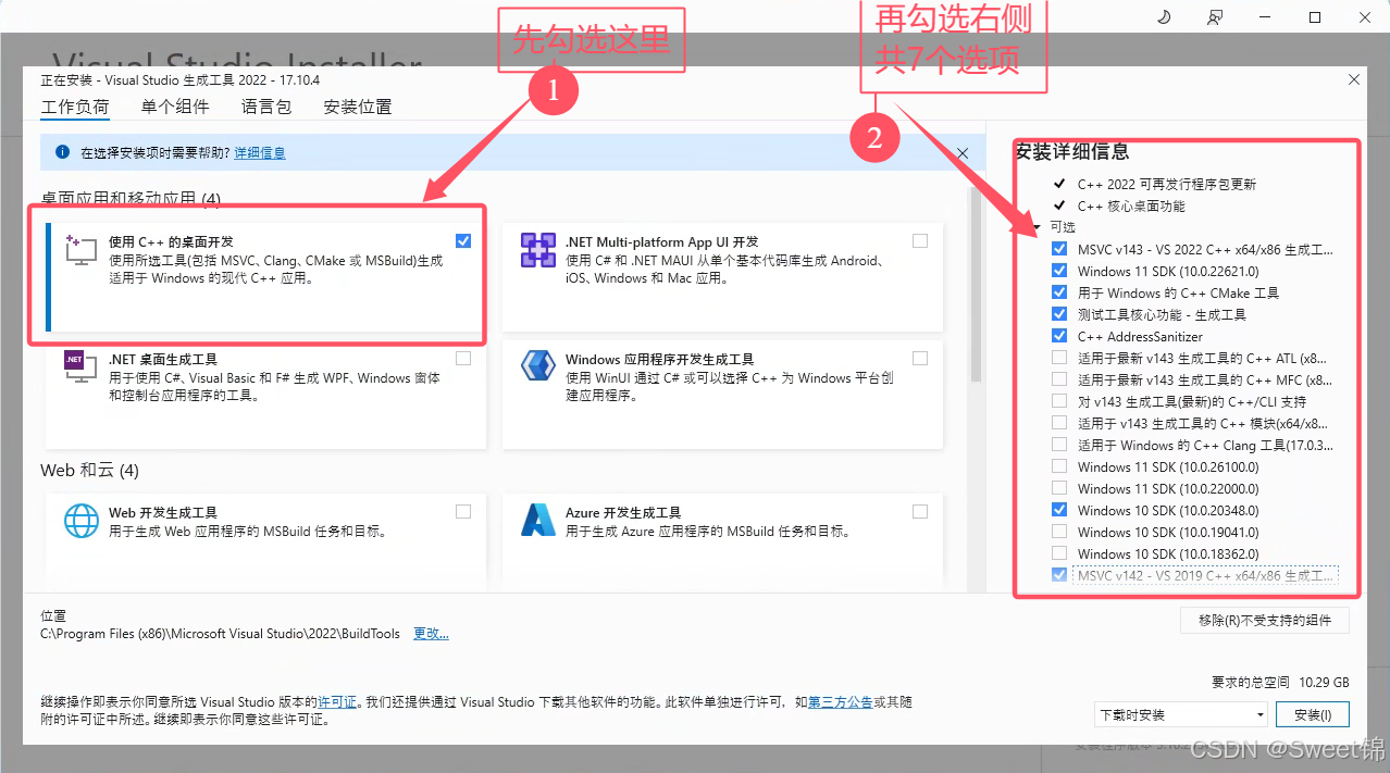 在线安装包内部下载完安装包后,会弹出如下画面,请严格按如图勾选相关配置,保持一致。否则在PaddleX编译时,会报错。(这是第1个坑)