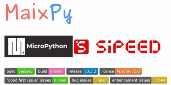 MaixPy是将MicroPhon 移植到K210芯片的一个项目,支持MCU(比如这里做实验的Maixduino开发板)的常规操作,集成了机器视觉和麦克风等系列,是可以快速开发,成本极低,体积实用的AIOT(人工智能+物联网)领域智能应用优化平台,相关源代码在github。Maixpy 的目的是让 AIOT 编程更简单, 基于 Micropython 语法,运行在一款有着便宜价格的高性能芯片 K210 上。