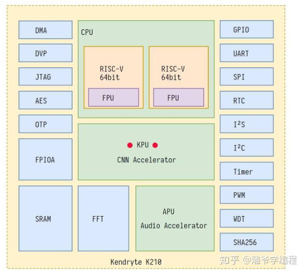 提示:TOPS(Tera Operations Per Second),1TOPS代表处理器每秒钟可进行一万亿次(10^12)操作。KPU是K210芯片内部的一个神经网络处理器(Neural Network Processor),它是专为低功耗环境下实现机器视觉和深度学习任务而设计的。
