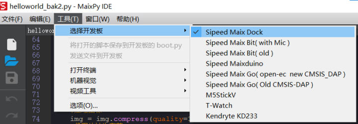 # 2. Select board at the top of MaixPy IDE: `tools->Select Board`