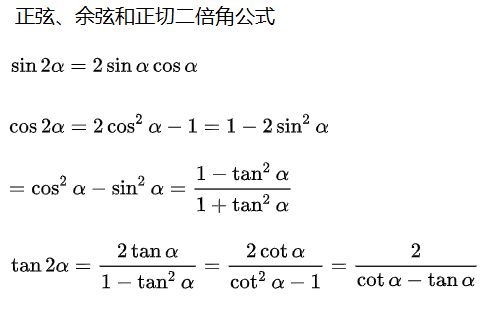 上面的求解过程还用到了常见的三角函数的二倍角公式如下。