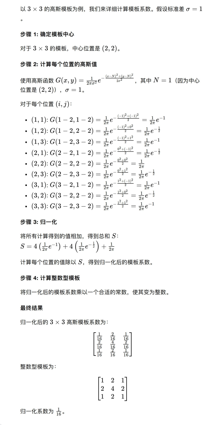 以3*3为例子的高斯模板的模板系统推导过程如下: