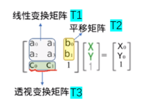 其中 w 是齐次坐标的一部分,最终的点坐标需要归一化为 (x′/w,y′/w)。