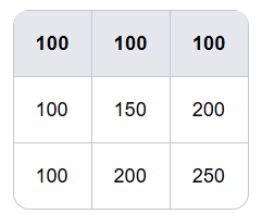 计算中心像素(150)的水平梯度: - 左侧:(-1)×100 + (-2)×100 + (-1)×100 = -400 - 右侧:1×200 + 2×200 + 1×250 = 950 - 中心:0×150 + 0×150 + 0×150 = 0