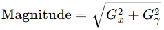 总和 = -400 + 950 + 0 = 550 所以,中心像素的水平梯度(Gₓ)是550。 类似地,我们可以用垂直方向的Sobel算子计算垂直梯度(Gᵧ),然后结合Gₓ和Gᵧ计算梯度大小和方向。每个像素的梯度强度计算公式如下: