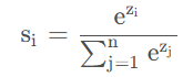对于神经网络的原始输出值 z = [ z 1 , z 2 , . . . , z n ] Softmax函数通过指数归一化将其转化为概率分布: