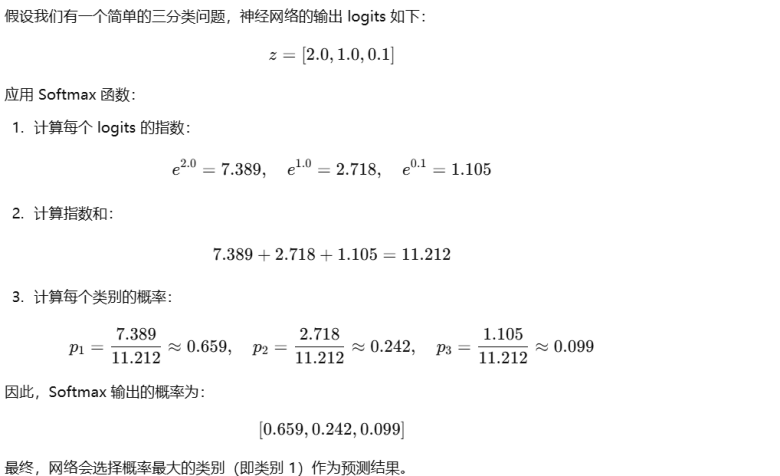 Softmax 输出: tensor([0.6590, 0.2424, 0.0986])