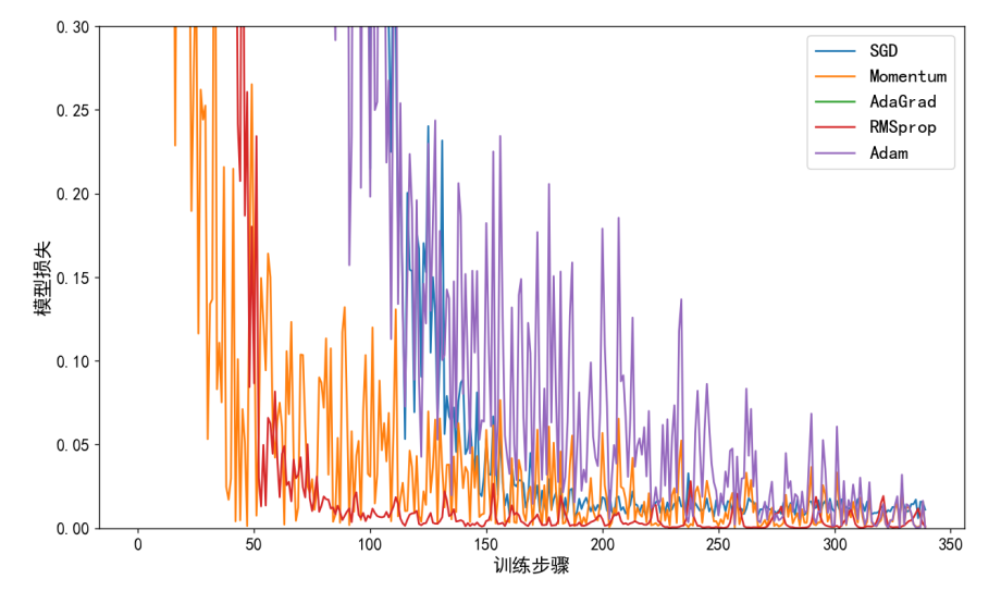 labels = ['SGD', 'Momentum', 'AdaGrad', 'RMSprop', 'Adam']